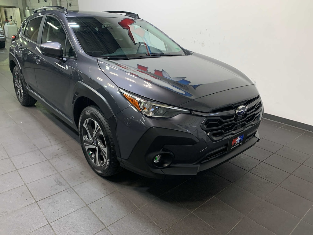 automatic emergency steering, emergency lane keep assist, system off switch, BSD/RCTA detection indicator exterior power mirrors, rear radar detection sensors and lane change assist, Rear Cross-Traffic Alert (RCTA) System, off and malfunction warning indicator and audible vehicle detection warning, 10-Way Power Drivers Seat, 2-way lumbar support, Blind Spot Detection (BSD), All-Weather Package, Heated Power Exterior Mirrors, Dual-Mode Heated Front Seats, Windshield De-Icer Wipers, Power Moonroof, tilt up and internal retracting w/auto-open/close and laminated, UV and dark tint moonroof glass, AUTO-DIMMING MIRROR W/COMPASS & HOMELINK. Subaru Premium with Magnetite Gray Metallic exterior and Black interior features a 4 Cylinder Engine with 180 HP at 5800 RPM*.