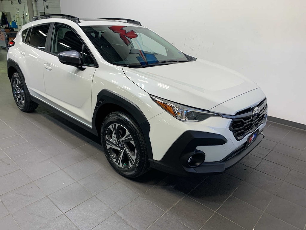 automatic emergency steering, emergency lane keep assist, system off switch, BSD/RCTA detection indicator exterior power mirrors, rear radar detection sensors and lane change assist, Rear Cross-Traffic Alert (RCTA) System, off and malfunction warning indicator and audible vehicle detection warning, 10-Way Power Drivers Seat, 2-way lumbar support, Blind Spot Detection (BSD), All-Weather Package, Heated Power Exterior Mirrors, Dual-Mode Heated Front Seats, Windshield De-Icer Wipers, Power Moonroof, tilt up and internal retracting w/auto-open/close and laminated, UV and dark tint moonroof glass, Auto-Dimming Mirror w/Compass & HomeLink, Auto-Dimming Exterior Mirror w/Approach Light. Subaru Premium with Crystal White Pearl exterior and Black interior features a 4 Cylinder Engine with 180 HP at 5800 RPM*.