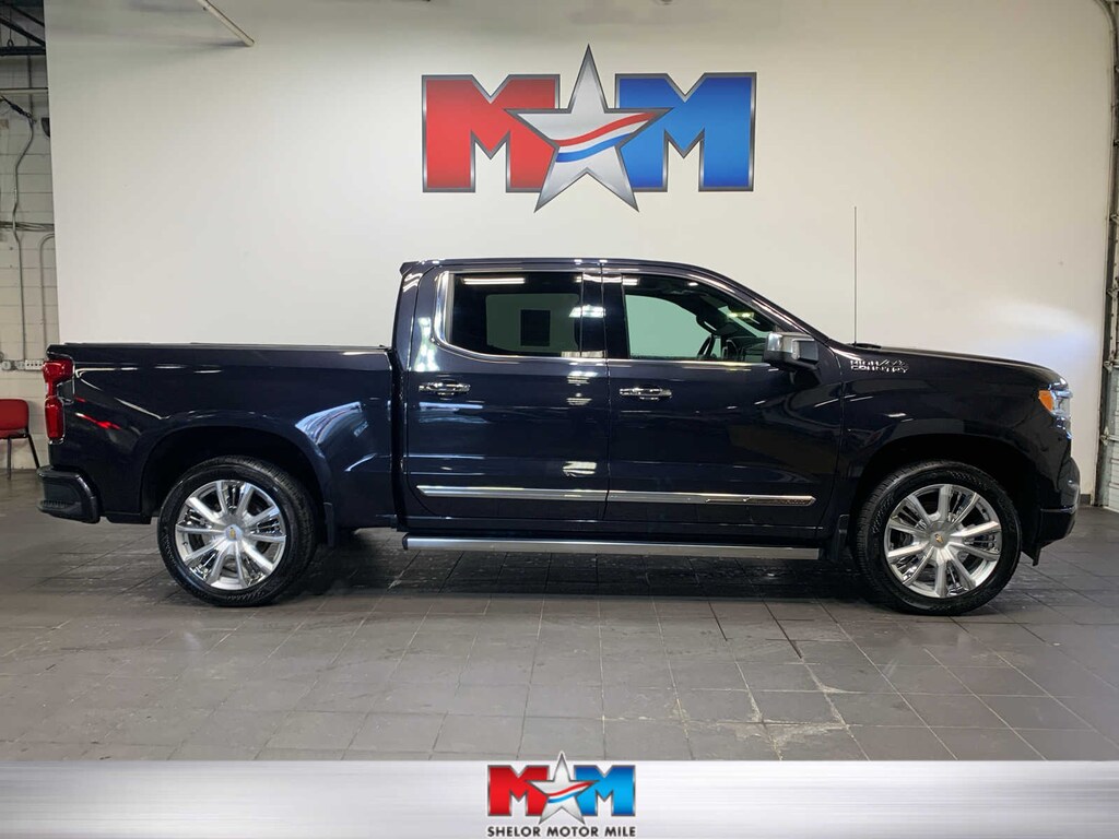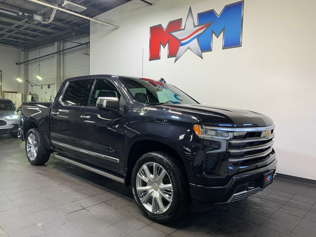 includes (CF5) power sunroof, (RPT) 22 painted aluminum wheels with Chrome inserts, (XCE) 275/50R22SL all-season, blackwall tires and (RIA) floor liner, LPO, with rearward articulating (providing bed access), SUSPENSION PACKAGE, ADAPTIVE RIDE CONTROL, with Google built-in, 13.4 diagonal HD color touchscreen, includes multi-touch display, AM/FM stereo, Bluetooth® streaming audio for music and most phones; featuring wireless Android Auto® and Apple CarPlay® capability for compatible phones, advanced voice recognition, in-vehicle apps, personalized profiles for infotainment and vehicle settings (STD), (355 hp [265 kW] @ 5600 rpm, 383 lb-ft of torque [518 Nm] @ 4100 rpm); featuring available Dynamic Fuel Management that enables the engine to operate in 17 different patterns between 2 and 8 cylinders, depending on demand, to optimize power delivery and efficiency (STD) (Certain vehicles may be forced to include (YK9) Not Equipped with Dynamic Fuel Management. See dealer for details.), with Electronic Transmission Range Selector, (ETRS), electronically controlled with overdrive, tow/haul mode and steering column paddle shifters. Includes Cruise Grade Braking and Powertrain Grade Braking (STD). Chevrolet High Country with Dark Ash Metallic exterior and Jet Black interior features a 8 Cylinder Engine with 355 HP at 5600 RPM*. New Tires