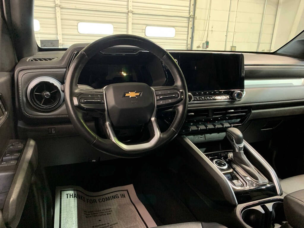 includes (HXR) Evotex up-level seating, (E90) Driver seat back pocket, (DA5) Rear center arm rest, (UBI) Dual front console USB charger, (KI3) Heated steering wheel, (T4L) LED headlamps, (T7E) LED daytime running lamps, (T93) LED taillamps, (KI6) 120V rear power outlet, (KC9) 120V bed mounted power outlet and (B26) Safety Package, includes (A2X) 8-way power driver seat, (AL9) driver seat power lumbar, (KA1), Heated front seats, (BTV) Remote start, (DD8) Auto dimming inside rearview mirror, (L3B) 2.7L TurboMax engine, (K4C) Wireless charging, (DLF) Heated outside rearview mirror, (RM7) full-size spare wheel and (ZAO) spare tire, includes (N37) Tilt and Telescoping steering column, (CJ2) Dual-zone automatic climate control, (K34) Cruise Control, (DEG) Illuminated visor vanity mirrors, (A28) Sliding rear window, (C49) Rear defogger, (PPA) EZ lift and lower tailgate, (BPC) StowFlex Tailgate, (BDR) Locking Cylinder and (T40) LED Fog Lamp, includes (KSG) Adaptive Cruise Control, (UKK) Rear Pedestrian Alert and (UV2) HD Surround Vision, includes (UKI) Blind Zone Steering Assist, (UFB) Rear Cross Traffic Braking, (UD7) Rear Park Assist (Includes (DLF) Heated outside Rearview Mirror. - With (ZL6) Advanced Trailering Package, includes (UKW) Blind Zone Steering Assist with Trailering, AUDIO SYSTEM FEATURE, BOSE PREMIUM 7-SPEAKER SYSTEM, WHEELS, 18 X 8.5 (45.7 CM X 21.6 CM) ANDROID DARK FULL GLOSS ALUMINUM, MIRRORS, OUTSIDE HEATED POWER-ADJUSTABLE, TRANSMISSION, 8-SPEED AUTOMATIC. Chevrolet 4WD LT with Sterling Gray Metallic exterior and Jet Black interior features a 4 Cylinder Engine with 237 HP at 5600 RPM*. Local Trade-In Great Shape