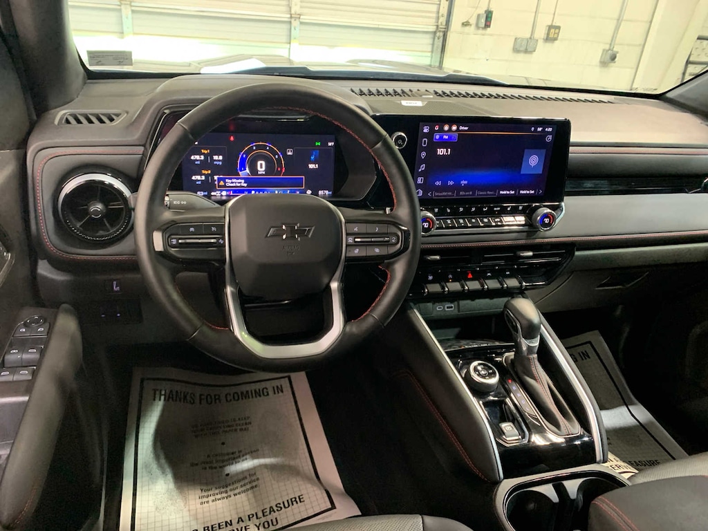 includes (CJ2) Dual-zone automatic climate control, (N37) Tilt and Telescopic steering column, (PPA) EZ lift and lower tailgate, (A2X) 8-way power driver seat, (AL9) Power driver seat lumbar, (KA1) Heated front seats, (BTV) Remote start, (DD8) Auto dimming inside rearview mirror, (BPC) StowFlex Tailgate, (BDR) Locking Cylinder and (K4C) Wireless charging, includes (HUQ) Perforated leather-appointed front seating, (E90) Driver seat back pocket, (DA5) Rear center arm rest, (A45) Driver memory settings, (KU9) Ventilated front seats, (KI3) Heated steering wheel and (B26) Safety Package, (dealer-installed), includes (KSG) Adaptive Cruise Control, (UKK) Rear Pedestrian Alert and (UV2) HD Surround Vision, WHEELS, 20 X 9 (50.8 CM X 22.9 CM) DARK ANDROID ALUMINUM, AUDIO SYSTEM FEATURE, BOSE PREMIUM 7-SPEAKER SYSTEM, BEDLINER, SPRAY-ON, BLACK WITH CHEVROLET LOGO, includes (UKI) Blind Zone Steering Assist, (UFB) Rear Cross Traffic Braking, (UD7) Rear Park Assist - With (ZL6) Advanced Trailering Package, includes (UKW) Blind Zone Steering Assist with Trailering, includes Chevrolet logo, (dealer-installed), (310 hp [231 kW] @ 5600 rpm, 430 lb-ft of torque [583 Nm] @ 3000 rpm) (STD), (STD), includes trailer hitch and 7-pin connector. Chevrolet 4WD Z71 with Sterling Gray Metallic exterior and Jet Black/Adrenaline Red interior features a 4 Cylinder Engine with 310 HP at 5600 RPM*. Local Trade-In