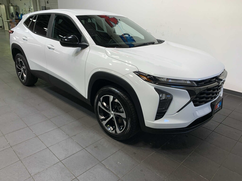 8 diagonal color touchscreen, AM/FM stereo, Bluetooth® audio streaming for 2 active devices, voice command pass-through to phone, Wireless Apple CarPlay® and Wireless Android Auto® compatibility (STD), (137 hp [102 kW] @ 5000 rpm, 162 lb-ft of torque [219 N-m] @ 2500 rpm) (STD), (STD). Chevrolet 1RS with Summit White exterior and Jet Black/Gray with Red accents interior features a 3 Cylinder Engine with 137 HP at 5000 RPM*.