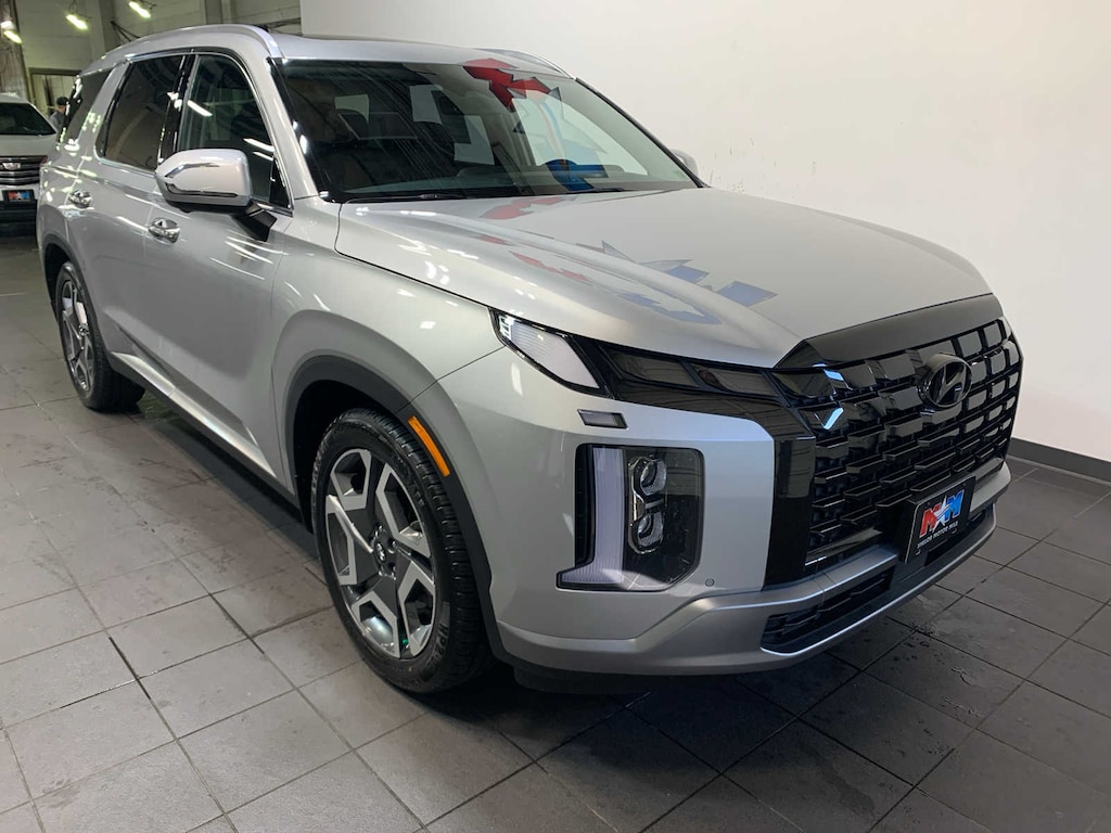 Leather Seating, Third Row Seat, Navigation, Quad Bucket Seats, Power Liftgate, Heated Driver Seat, Heated Rear Seat, Cooled Driver Seat, Cooled Rear Seat, Back-Up Camera, Premium Sound System, iPod/MP3 Input, Onboard Communications System, Dual Moonroof, Aluminum Wheels Rear Spoiler, MP3 Player, Rear Seat Audio Controls, Rear Air, Satellite Radio. Hyundai Limited with Typhoon Silver exterior and Black interior features a V6 Cylinder Engine with 291 HP at 6000 RPM*. Serviced here, Originally bought here, New Tires, Local Trade-In