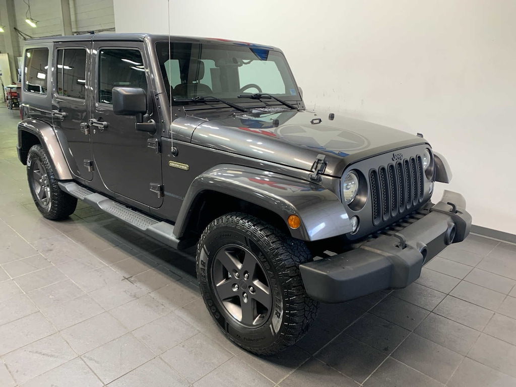 Engine: 3.6L V6 24V VVT, Transmission: 5-Speed Automatic (W5A580), Mid Gloss Granite Crystal Appliques, Freedom Edition Badging, Power Convenience Group, Low Gloss Black Wrangler Decal, Auto Dim Mirror w/Reading Lamp, Front 1-Touch Down Power Windows, Security Alarm, Mid Gloss Granite Crystal Grille, Oscar Mike Badge, Black/Chrome Screws Fuel Filler Door, MOPAR Black Tail Lamp Guards, Deep Tint Sunscreen Windows, MOPAR Coat Hooks and Grab Handles, Silver Interior Accents, Vehicle Information Center, Remote USB Port, Uconnect Voice Command w/Bluetooth®, Leather Wrapped Steering Wheel, Chrome/Leather Wrapped Shift Knob, Tire Pressure Monitoring Display, Iron Gray Interior Accents, Body Color Fender Flares, Power Heated Mirrors, Freedom Package Decals, Power Locks, Remote Keyless Entry, Tip Start, Hill Descent Control, 115V Auxiliary Power Outlet, Alpine 9-Speaker w/All Weather Subwoofer, Amplified 552W 9 speaker, including subwoofer, Freedom Panel Storage Bag, Rear Window Defroster, Rear Window Wiper/Washer, Tinted Rear Quarter & Liftgate Windows, Delete Sunrider Soft Top, Class II Receiver Hitch, 3.73 Rear Axle Ratio, Trailer Tow w/4-Pin Connector Wiring, REMOTE START SYSTEM, For More Info Call 888-539-7474, (STD). Jeep Freedom with Granite Crystal Metallic Clearcoat exterior and Black interior features a V6 Cylinder Engine with 285 HP at 6400 RPM*.