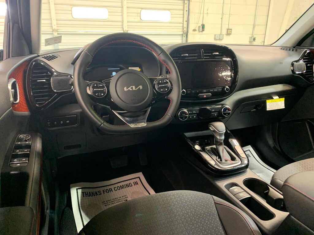 Cargo Cover, Dual Level Cargo Board, Electronic Parking Brake, harman/kardon® Premium Audio System, center speaker, subwoofer and amplifier, Heated Front Seats, 10-way power drivers seat w/lumbar support, Speaker Lights, multiple ambience themes, Forward Collision Avoidance-Assist, fusion, cyclist and junction turning, Navigation-Based Smart Cruise Control (NSCC-C), Highway Driving Assist, LED Headlights, Positioning Lights & Tail Lights, LED Fog Lights, CROSS BARS. Kia GT-Line with Fusion Black exterior and Black interior features a 4 Cylinder Engine with 147 HP at 6200 RPM*. Local Trade-In