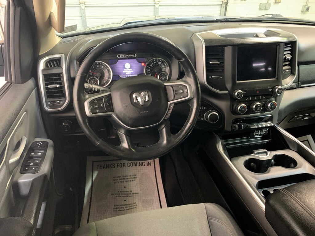 Radio: Uconnect 4 w/8.4 Display, Rear Window Defroster, ParkSense Front/Rear Park Assist w/Stop, Rear View Auto Dim Mirror, Power Adjustable Pedals, Rear Power Sliding Window, Rear Dome w/On/Off Switch Lamp, Glove Box Lamp, Power 4-Way Driver Lumbar Adjust, 115V Auxiliary Rear Power Outlet, Power 8-Way Driver Seat, 2 USB Full Function/Charge Only Media Hub, Heated Front Seats, Heated Steering Wheel, Foam Bottle Insert (Door Trim Panel), Class IV Receiver Hitch, Dampened Tailgate, Security Alarm, Black Premium Power Mirrors, Big Horn IP Badge, Remote Start System, SiriusXM Satellite Radio, 400W Inverter, Air Conditioning ATC w/Dual Zone Control, 115V Auxiliary Power Outlet, Universal Garage Door Opener, 2nd Row In Floor Storage Bins, Sun Visors w/Illuminated Vanity Mirrors, Active Noise Control System, 180 Amp Alternator, Heavy Duty Engine Cooling, GVWR: 7,100 lbs, Dual Rear Exhaust w/Bright Tips, Hemi Badge, Power 8-Way Driver Seat, Bucket Seats, Manual Adjust 4-Way Front Passenger Seat, Full Length Floor Console, Power 4-Way Driver Lumbar Adjust, LED Taillamps, ANTI-SPIN DIFFERENTIAL REAR AXLE, REMOTE START SYSTEM, TRANSMISSION: 8-SPEED AUTOMATIC (8HP75). Ram Big Horn with Granite Crystal Metallic Clearcoat exterior and Diesel Gray/Black interior features a 8 Cylinder Engine with 305 HP at 6400 RPM*. AutoCheck One Owner Great Shape
