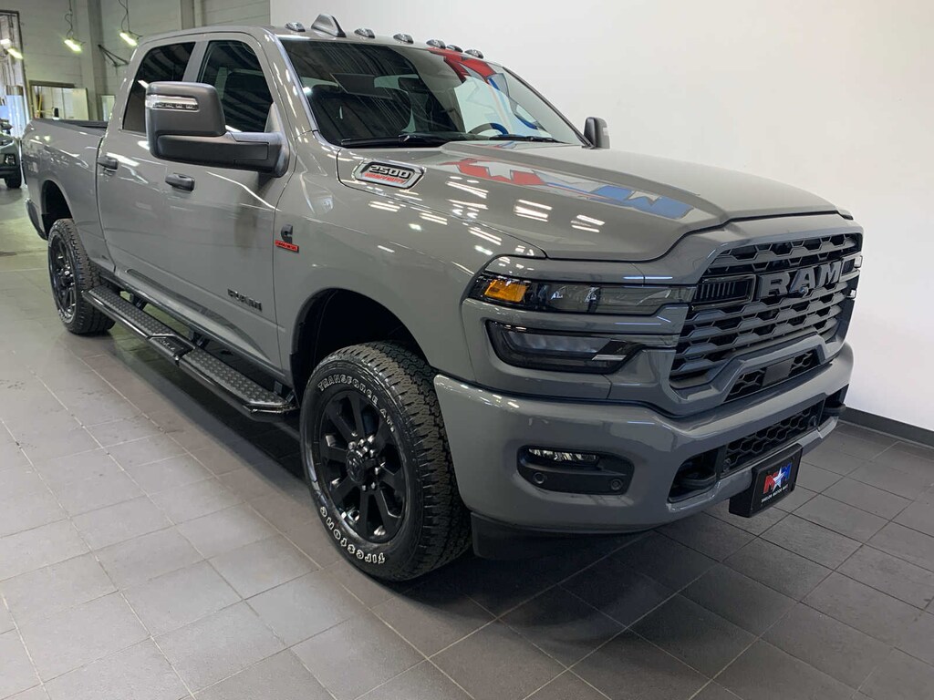 Selective Catalytic Reduction (Urea), Dual 730 Amp Maintenance Free Batteries, Cummins Turbo Diesel Badge, Heavy Duty Engine Cooling, Diesel Exhaust Brake, Supplemental Heater, 3.42 Axle Ratio, Front Bumper Sight Shields, Capless Fuel Fill w/o Discriminator, GVWR: 11,040 lbs, Emergency Vehicle Alert System (EVAS), Glove Box Lamp, 12 Touchscreen Display, Auto Power-Folding Mirrors, Footwell Courtesy Lamp, Anti-Spin Differential Rear Axle, MOPAR Deployable Bed Step, Alexa Built-In, Forward & Reverse Utility Lights, Locking Lower Glove Box, Remote Start System, 9 Alpine Speakers w/Subwoofer, Dual Glove Boxes, 2nd Row In Floor Storage Bins, Rear View Auto Dim Mirror, Rear Dome w/On/Off Switch Lamp, LED Bed Lighting, GPS Navigation, SiriusXM w/360L, Connected Travel & Traffic Services, Foam Bottle Insert (Door Trim Panel), Big Horn IP Badge, Off-Road Info Pages, Trailer Tow Pages, HD Radio, Radio: Uconnect 5 Nav w/12.0 Display, Power Heated Folding Telescopic Mirrors, Steering Wheel Mounted Audio Controls, Air Conditioning ATC w/Dual Zone Control, MOPAR Spray In, Gloss Black Nostrils/Mic Black Grille, Tires: LT285/60R20E OWL On/Off Road, Black Exterior Truck Badging, Wheels: 20 x 8.0 Black Painted Aluminum, Body Color Grille Surround, Black Interior Accents, Black Wheel Center Hub, Painted Front Bumper, Painted Rear Bumper, PAINTED FLAT WHEEL-TO-WHEEL SIDE STEPS, Heated Steering Wheel, Heated Front Seats, Bucket Seats, Power Adjust 8-Way Driver Seat, Folding Flat Load Floor Storage, Rear 60/40 Folding Seat, Front Seat Back Map Pockets, Power 2-Way Driver Lumbar Adjust, Full Length Upgraded Floor Console, MOPAR FRONT & REAR RUBBER FLOOR MATS, TRANSMISSION: 8-SPEED TORQUEFLITE HD AUTOMATIC. Ram Big Horn with Ceramic Gray Clearcoat exterior and Black interior features a Straight 6 Cylinder Engine with 430 HP at 2800 RPM*. Local Trade-In