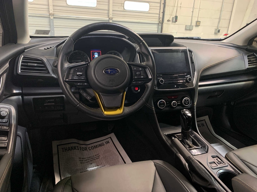 Blind Spot Detection (BSD), Rear Cross-Traffic Alert (RCTA) system, Power Moonroof, Radio: Subaru STARLINK 8.0 Multimedia Plus System, AM/FM stereo, HD Radio, single disc CD player w/MP3/WMA/CRR/RW file capability, multi touch gesture high resolution display screen, voice activated controls, Bluetooth® audio streaming and hands-free phone connectivity, Bluetooth® hands-free SMS text messaging connectivity, Near Field Communication (NFC), iPod control capability, SiriusXM All Access Radio (4 months free trial/subscription required after), SiriusXM Travel Link (4 months free trial/subscription required after), smartphone integration: AHA, Android Auto®, CarPlay, Pandora and STARLINK cloud applications, USB audio system, USB and Over The Air (OTA) audio system, 6 speakers (2 dash panel tweeter, Auto-Dimming Mirror w/Compass & HomeLink, Splash Guards, Cargo Net, Rear Bumper Cover, Rear Seatback Protector, AERO CROSSBAR SET. Subaru Sport with Magnetite Gray Metallic exterior and Gray w/Yellow Stitching interior features a 4 Cylinder Engine with 182 HP at 5800 RPM*.