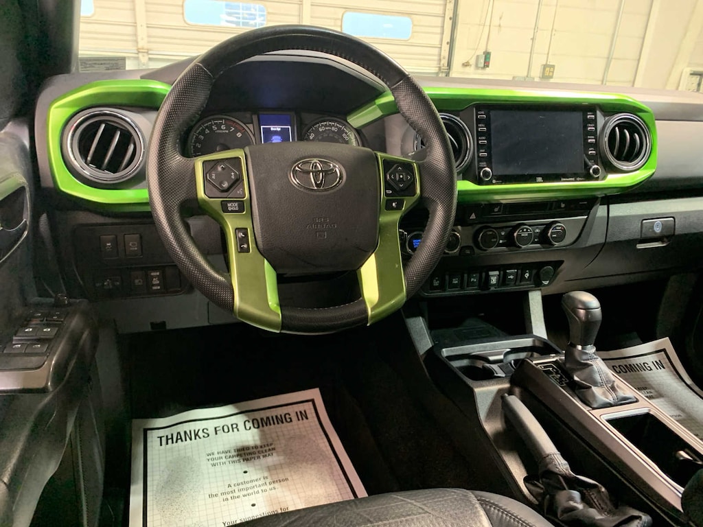 leather shift lever and knob, TRD upgrade package option 3 and Off Road grade package, Automatic Headlights, Radio: Entune Premium JBL AM/FM/CD w/Nav & App Ste, MP3/WMA playback capability, 6 JBL speakers w/subwoofer, 8 high-resolution touch-screen display w/split screen, auxiliary audio jack, USB media port, iPod connectivity and control, Siri Eyes Free, advanced voice recognition, Bluetooth® hands-free phone capability, phone book access and music streaming, cache radio, HD Radio, HD predictive traffic and Doppler weather overlay, SiriusXM satellite radio w/complimentary SiriusXM All Access 3-month trial subscription included and integrated backup camera display, Power Tilt/Slide Moonroof, Heated Front Seats, Rear Parking Assist Sonar, Multi Terrain Monitor, Blind Spot Monitor w/Rear Cross Traffic Alert, Mesh Front Grille, PREDATOR TUBE STEPS (TMS), LED FOG LAMP W/BLACK BEZEL, ALL WEATHER FLOOR LINER & DOOR SILL PROTECTOR (TMS). Toyota TRD Off Road with Lunar Rock exterior and Black/Gun Metal interior features a V6 Cylinder Engine with 278 HP at 6000 RPM*. New Tires